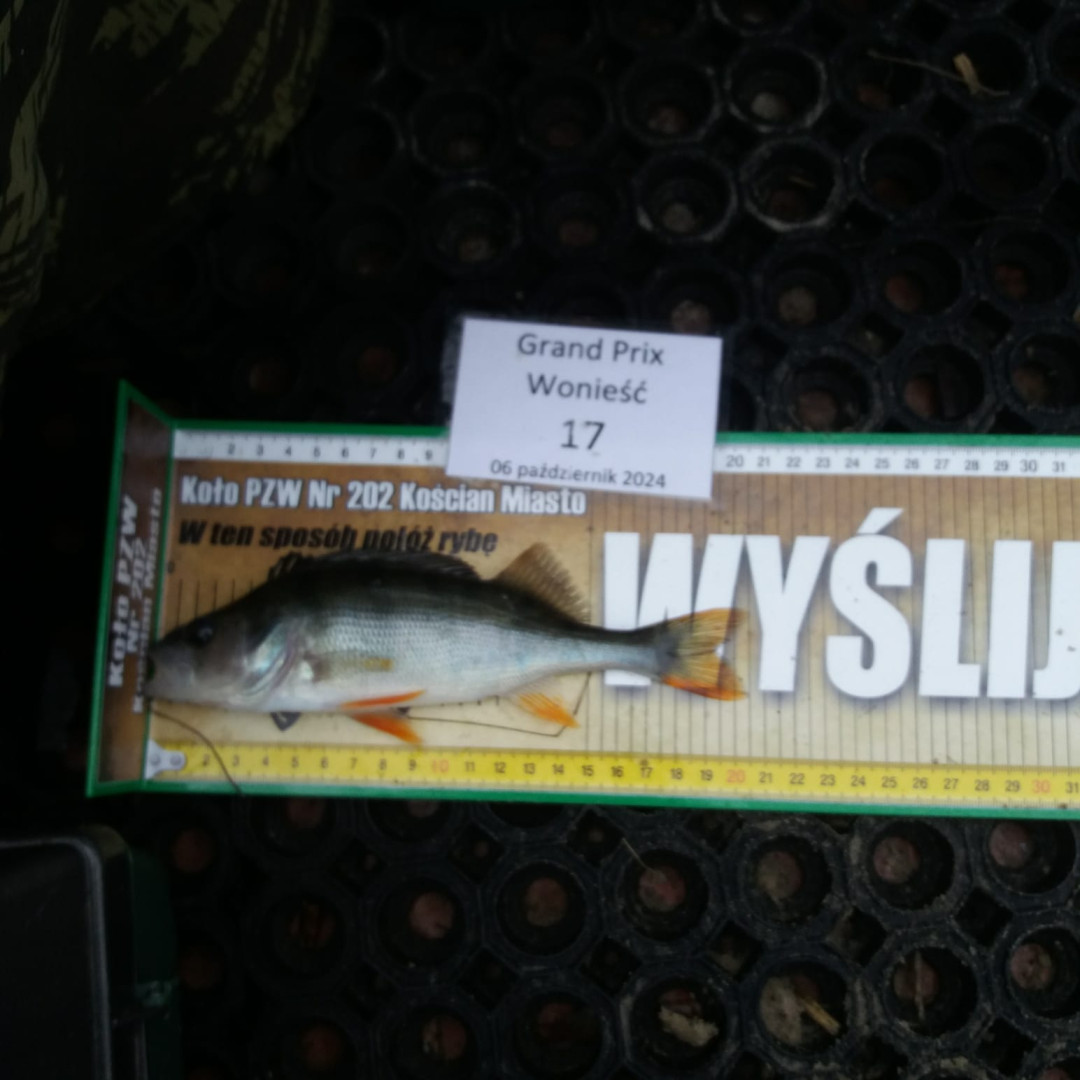 Za nami I tura spinningowych zawodów GRAND PRIX WONIEŚĆ 2024. W niedzielę 06 października na „starcie" zgłosiło się 17 zawodników. Jako organizatorzy „zadbaliśmy” o pogodę by łowiło się w komfortowych warunkach. Na aktywność ryb nie mieliśmy wpływu ale z tym bez problemu poradzili sobie uczestnicy zawodów co zaowocowało świetnymi wynikami: