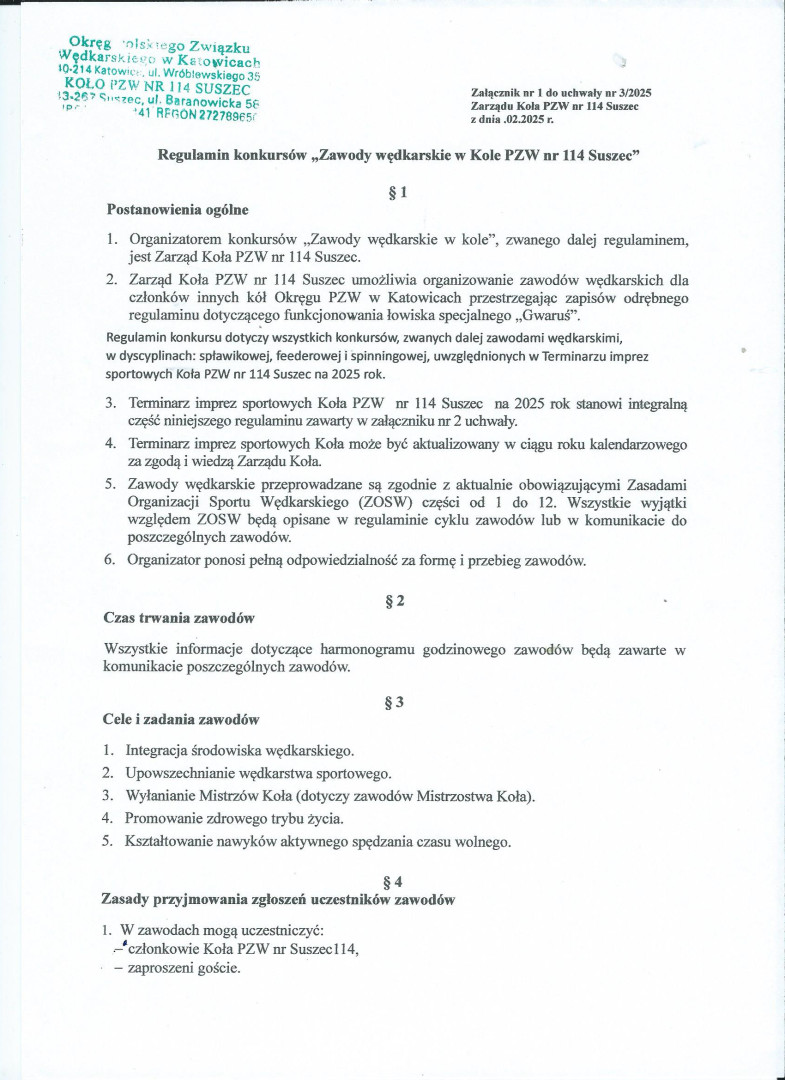 Regulamin zawodów 2025 OR "Gwaruś"